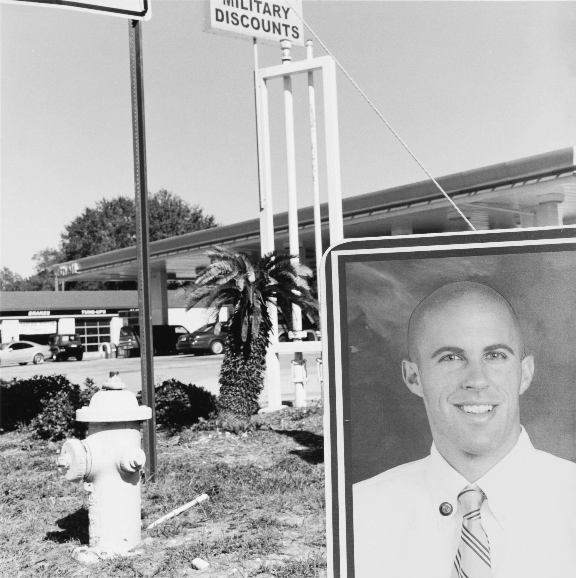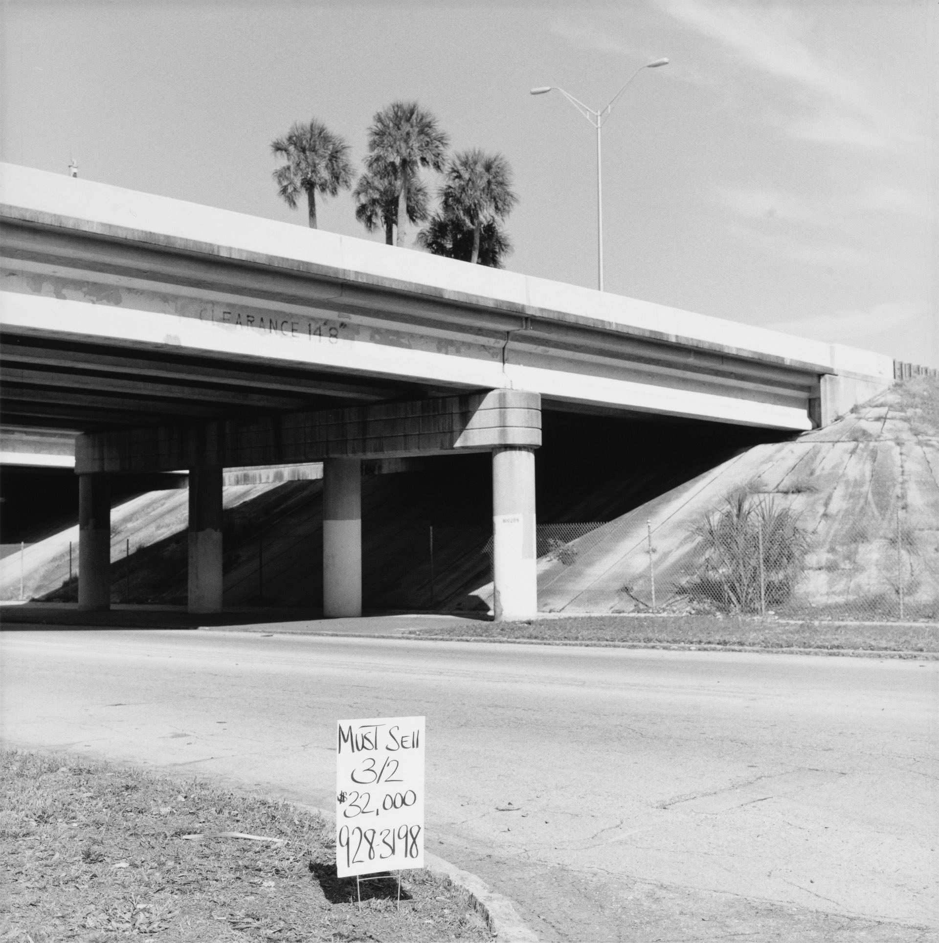 I made one last photographic trip to Tampa in the summer of 2010 to look for urban landscapes to give some context to the other photographs. I found the mood of the city profoundly changed following the financial crisis of 2007—2008, with the bursting of the housing bubble. Many of the old ads were gone, replaced instead with forced-to-sell signs stuck in lawns along the roadside. In George Packer’s New Yorker article, The Ponzi State, I’d read about all of the exuberant promise and boundless expansion that attracts people to Florida and how it was now tinged with a real sense of loss. The palm trees, billboard toothy grins, and single family homes could still be seen, but now added was the sadder glaring desperate appearances; the foreclosures, the stalled construction, and the boarded up fast food chains.