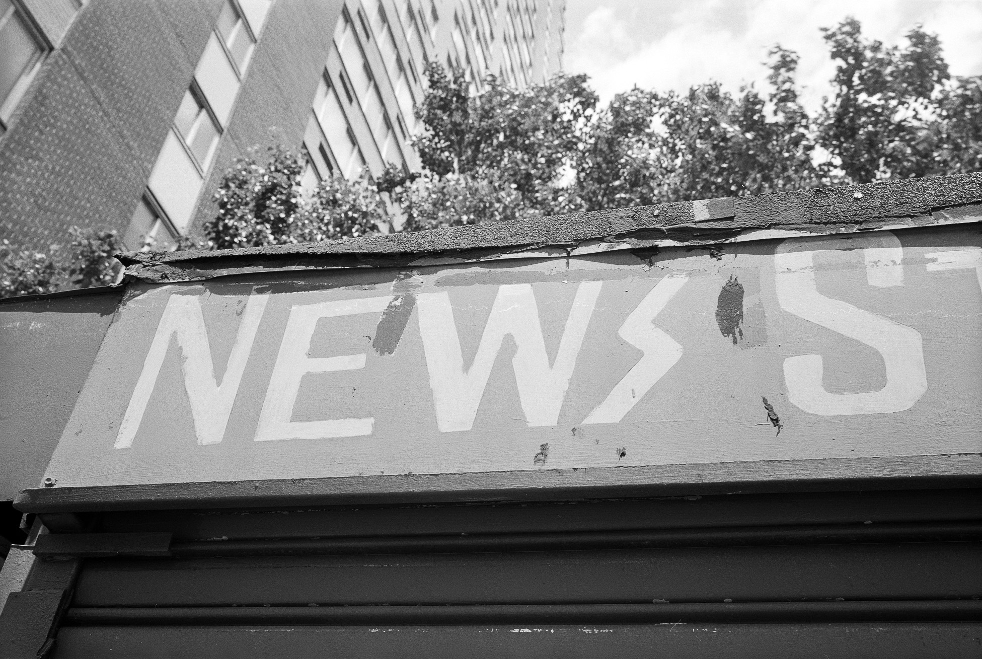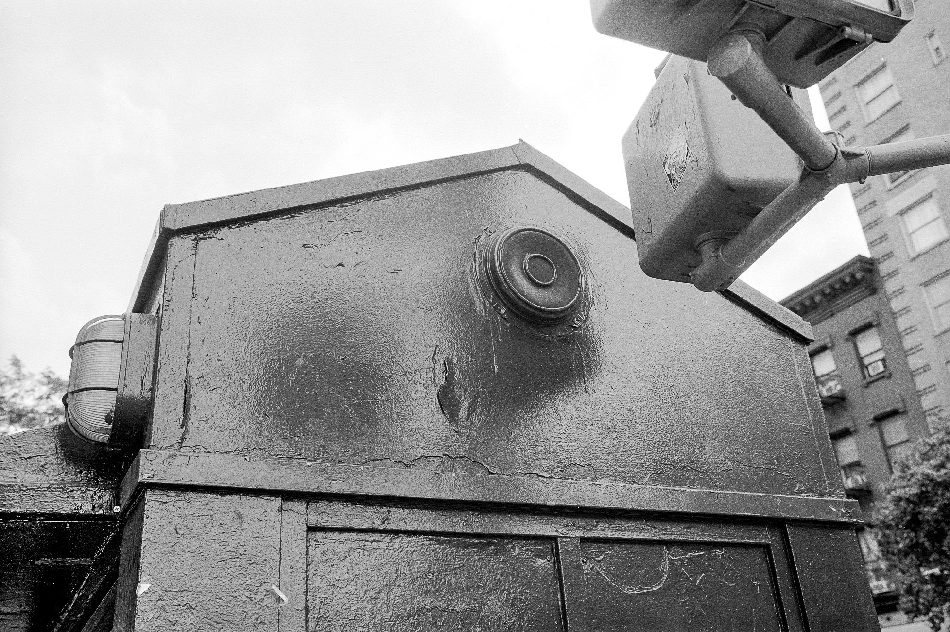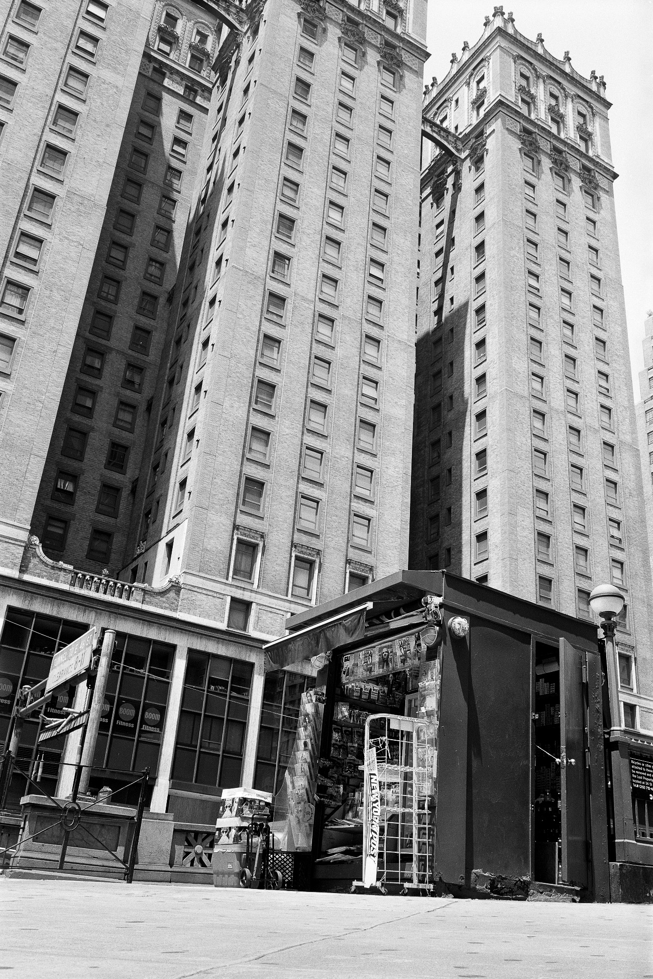 Working on this project brought about an important change in my photography. Up until this point I had primarily been photographing with large format view cameras that required a tripod and slow contemplation with your head under the dark cloth looking at the image on the ground glass. This proved impossible with the newsstands, as I often had to dash out into the street and make an exposure, timing my action to the traffic signals. I tried a hand-held 4x5 camera (the same type Weegee used, which I felt was appropriate to the subject matter), but in the end a medium format 6x9cm camera proved the perfect tool—detailed as large format, but agile and cinematic as 35mm. I continue to use that format to this day.
