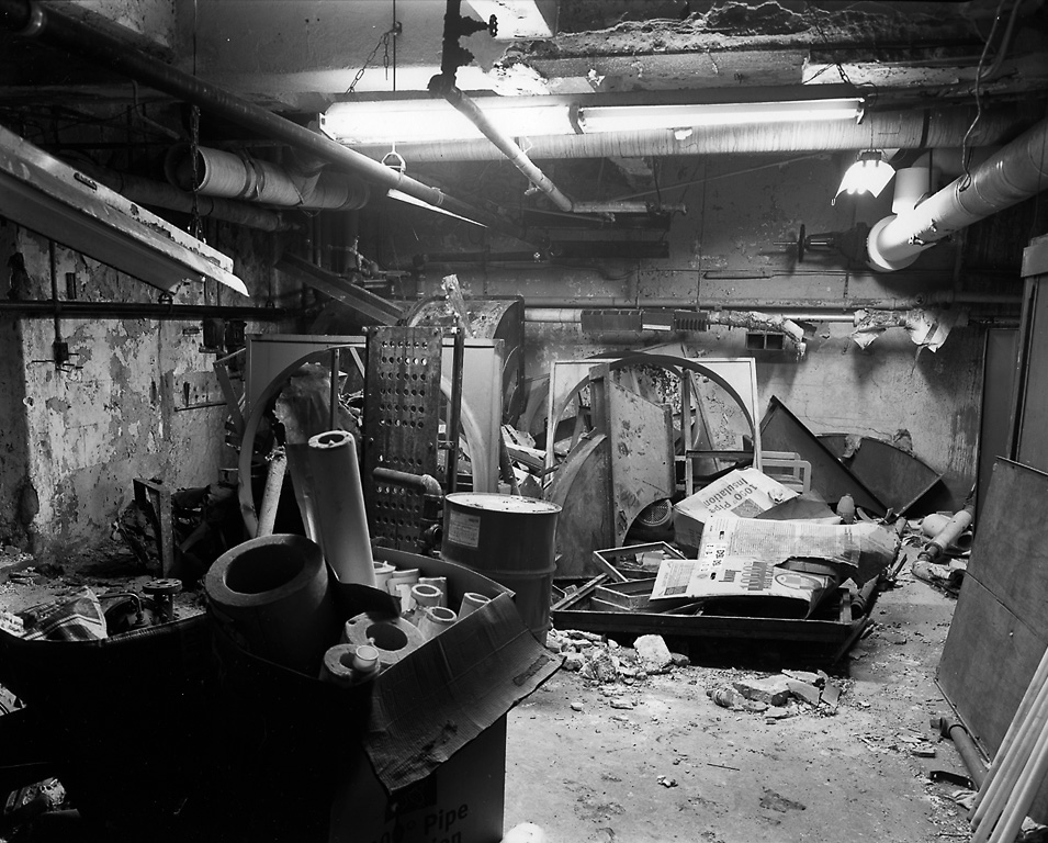 These photographs were made in the basement of Prentis Hall on 125th street in Manhattan. The building is used by Columbia MFA students for classes and studios. The basement of what was originally built as a dairy is full of abandoned equipment from its days as a Heat Transfer research facility (for use in nuclear power stations).